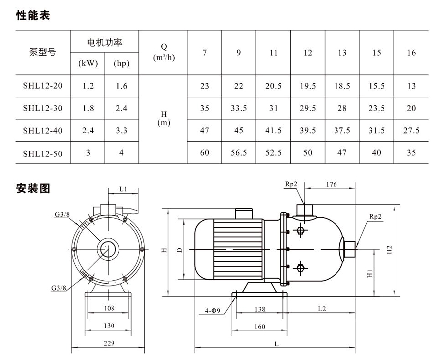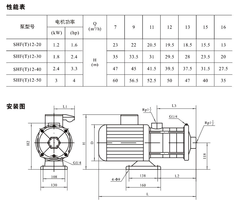 SHL/SHF/SHFT12為臥式多級非自吸多級離心泵,配加長軸電機。緊湊式結構使泵尺寸很小,軸向入口或徑向出口。